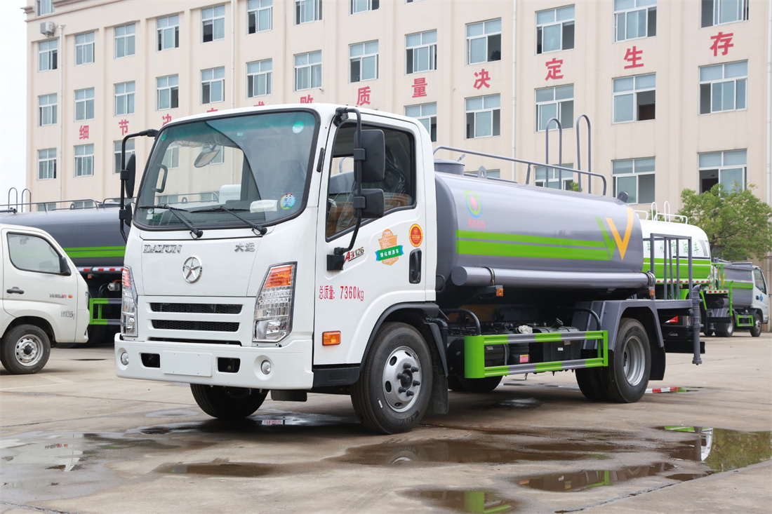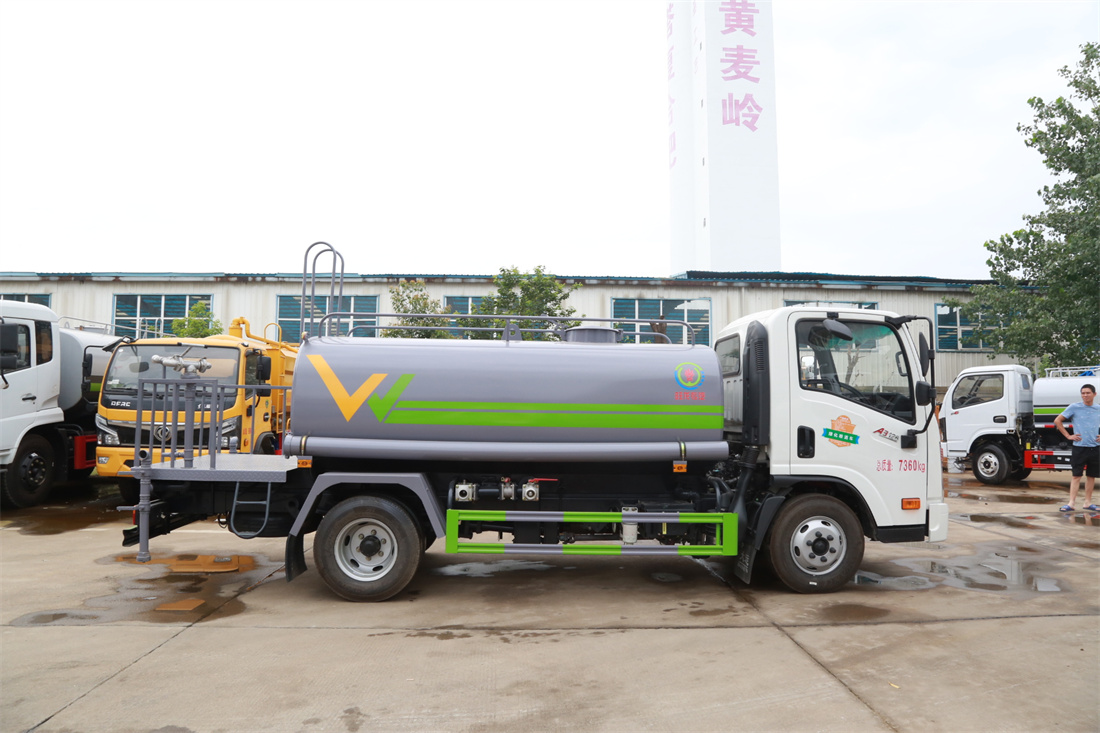 灑水車前裝有鴨形噴嘴或圓頭沖嘴,后面裝有圓柱開灑水噴嘴或蓮蓬頭噴嘴,后部有一工作平臺,裝配有水炮。后部還可裝8個(gè)噴嘴(選裝)。
