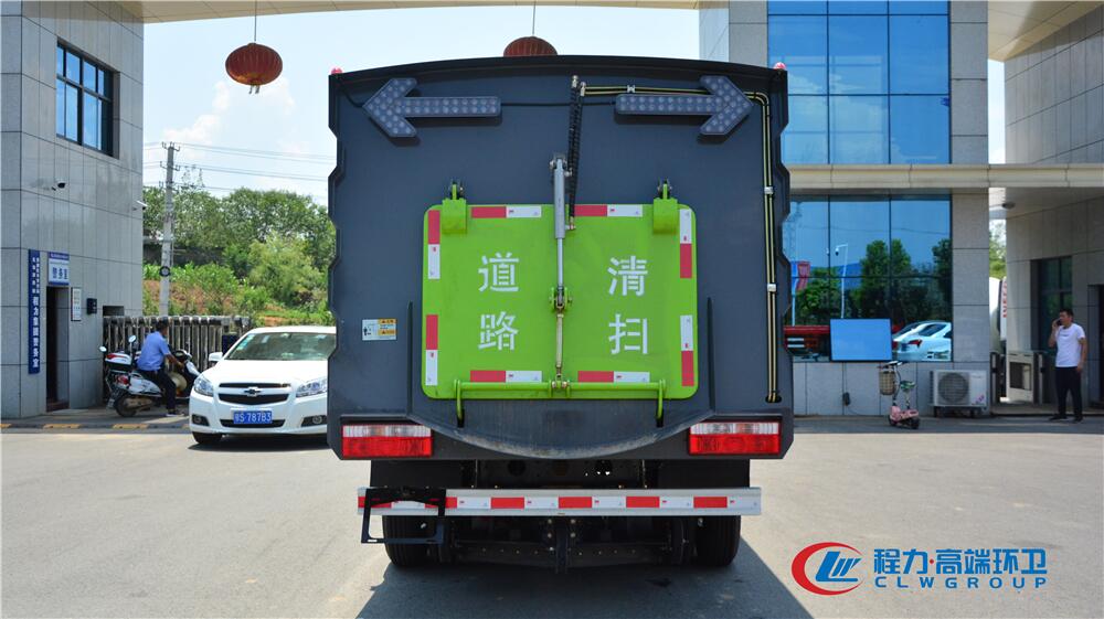 1.采用吸掃混合的方式收集垃圾,濕式除塵、電液,液壓傾翻卸料的作業方式對路面進行清掃作業。