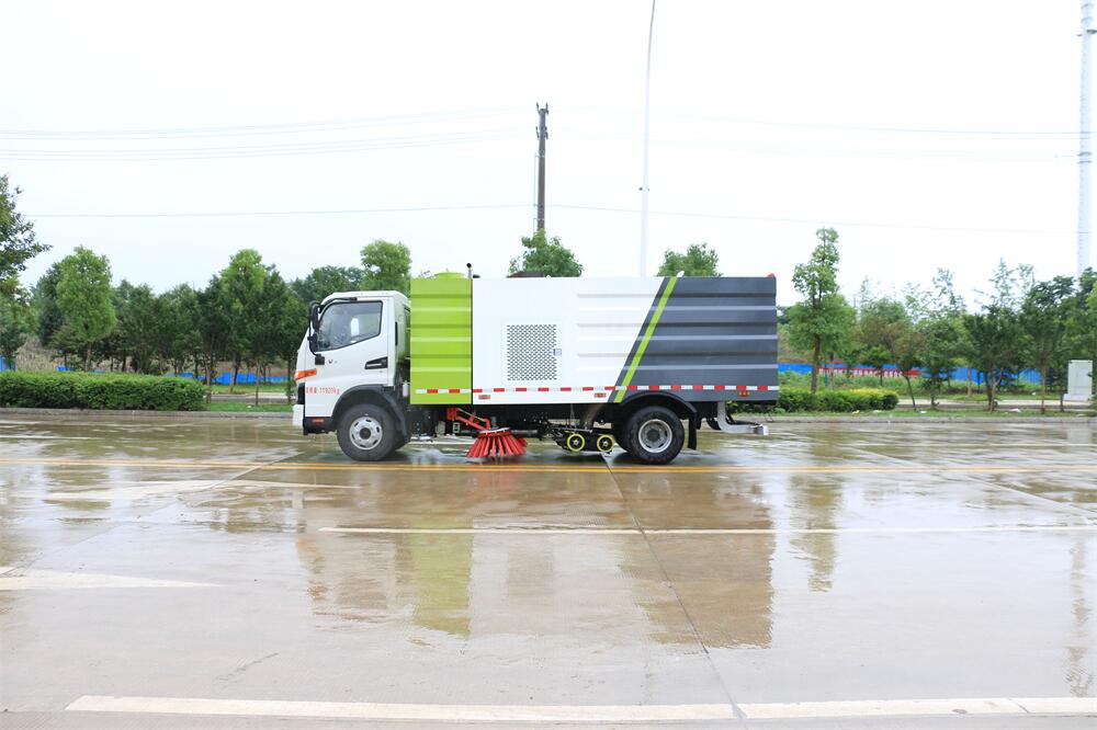 洗掃潔凈度高,該車型齊全的功能解決不同路面環境的作業,一次作業洗掃效率達98%以上,前沖功能、洗掃功能、路沿清洗功能、后噴霧功能、低壓沖洗功能以及采用的吸盤+左右側噴桿結構,路面、溝縫、彎道處、路沿上等處的灰塵、垃圾均能處理干凈,確保環境干凈、整潔。