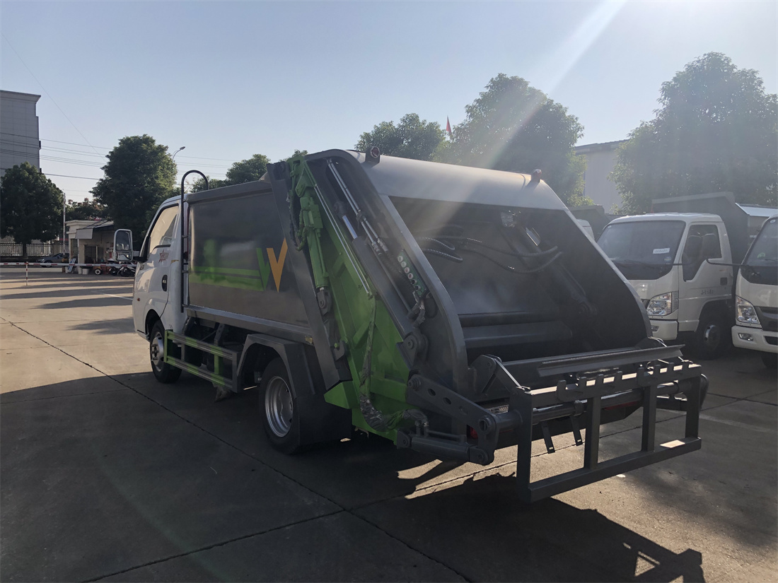 上裝配置:垃圾箱容積:4方,新款平面弧形廂體,廂體材料為武鋼優質碳鋼,PLC一鍵操作**,手電一體操作模式,兩側雙電控,帶駕駛室內操作,底板支撐加強,雙向壓縮,開放式易清潔污水箱。壓縮式垃圾車采用機電液一體化技術,借助機、電、液聯合自動**系統、電腦**、手動操作系統,通過填裝器和推鏟等專用裝置,實現垃圾倒入、壓碎或壓扁、強力裝填,把垃圾擠入車廂并壓實和推卸,污水全部進入污水廂,解決了垃圾運輸過程中的二次污染的問題。壓縮式垃圾車具有自動反復壓縮以及蠕動壓縮功能,壓縮比高、密封性好、裝載量大﹑操作方便、環保性好﹑整車利用功率高等優點。作業自動化,垃圾收集方式簡便、高效。后翻轉機構選裝:1、掛塑料桶式翻轉機構;2、掛鐵桶式翻轉機構;3、擺臂式翻轉機構; 4、簸箕斗式翻轉機構。