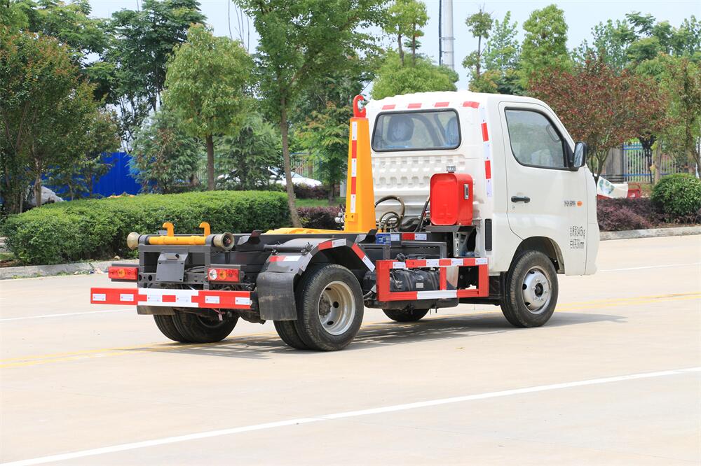 勾臂式垃圾車(車廂可卸式垃圾車)介紹: 車廂可卸式垃圾車又叫拉臂式垃圾車,是一種采用高新設(shè)計(jì)可伸縮的鉤臂,實(shí)現(xiàn)垃圾廂的二次吊裝,自吊上放下,可自行傾倒垃圾的環(huán)衛(wèi)設(shè)備。 拉臂式垃圾車結(jié)構(gòu)簡單,操作穩(wěn)定方便,裝卸效率高,機(jī)械化程度高,節(jié)省人力。鉤臂垃圾車一車可帶多個垃圾廂,在裝卸的運(yùn)輸過程中可有效地避免二次污染。 拉臂垃圾車采用高新設(shè)計(jì)可擺動的鉤臂,垃圾箱由框架、開啟油缸、滑輪、后門和若干加強(qiáng)框架與鋼板焊接而成。調(diào)換貨廂快捷方便,貨廂上帶蓋(倒垃圾時可翻開),鉤臂垃圾車?yán)鴰w可選用碳鋼、不銹鋼材質(zhì)、內(nèi)部采取環(huán)氧樹脂防腐處理,改裝部分與原車底盤為可分離式,維修方便且保持了原車的機(jī)動性及行駛性能。