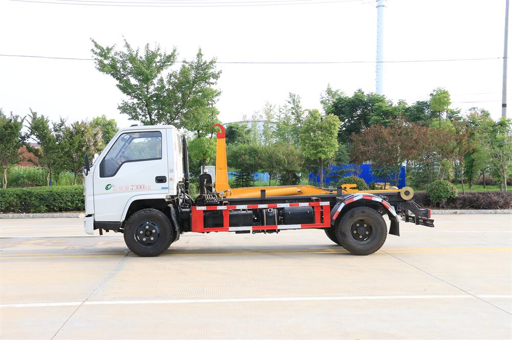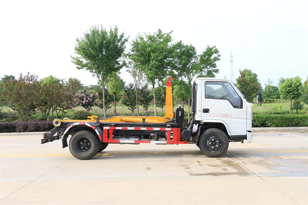 勾臂式垃圾車(車廂可卸式垃圾車)介紹: 車廂可卸式垃圾車又叫拉臂式垃圾車,是一種采用高新設計可伸縮的鉤臂,實現垃圾廂的二次吊裝,自吊上放下,可自行傾倒垃圾的環衛設備。 拉臂式垃圾車結構簡單,操作穩定方便,裝卸效率高,機械化程度高,節省人力。鉤臂垃圾車一車可帶多個垃圾廂,在裝卸的運輸過程中可有效地避免二次污染。 拉臂垃圾車采用高新設計可擺動的鉤臂,垃圾箱由框架、開啟油缸、滑輪、后門和若干加強框架與鋼板焊接而成。調換貨廂快捷方便,貨廂上帶蓋(倒垃圾時可翻開),鉤臂垃圾車垃圾廂體可選用碳鋼、不銹鋼材質、內部采取環氧樹脂防腐處理,改裝部分與原車底盤為可分離式,維修方便且保持了原車的機動性及行駛性能。