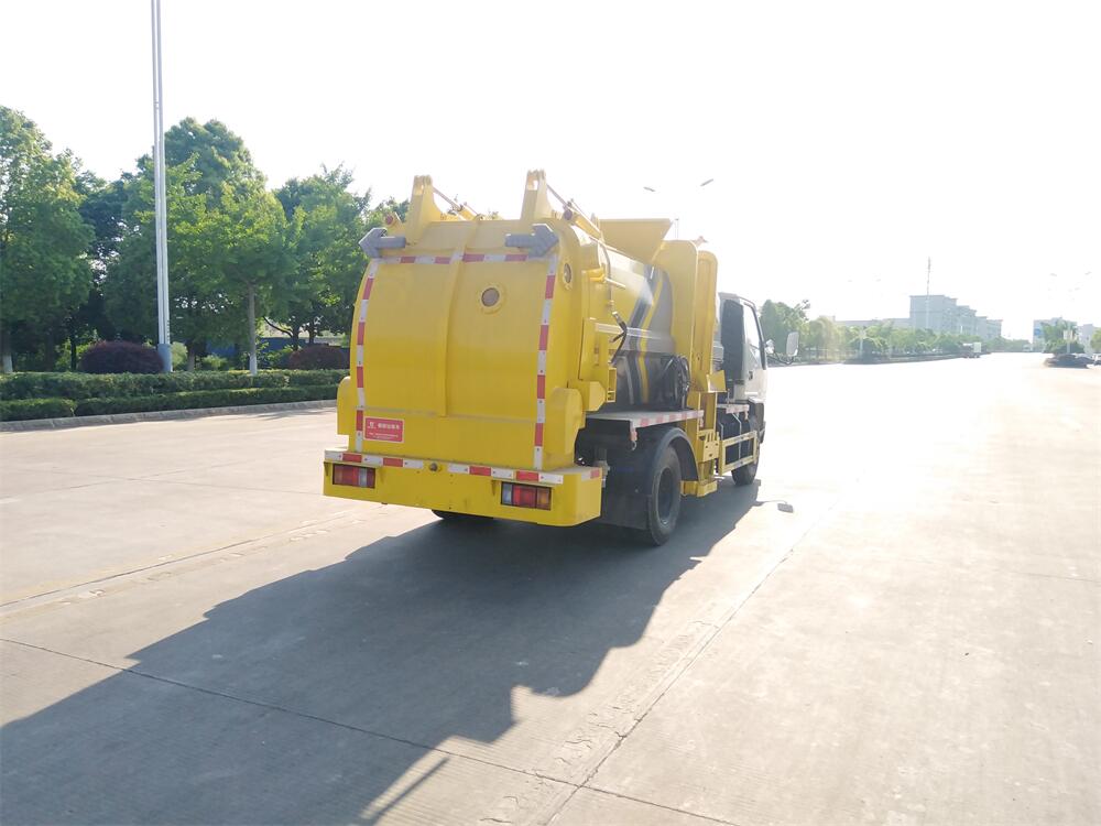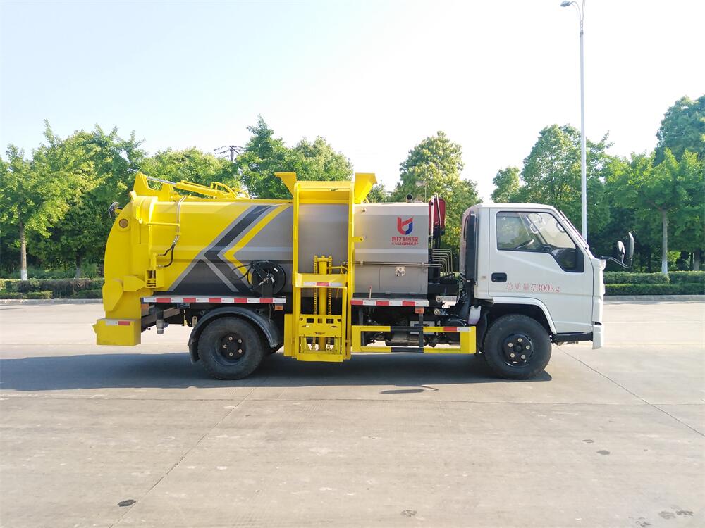 上裝配置:罐體容積6m3,配備120L/240L掛桶提升翻轉(zhuǎn)機構(gòu),液壓系統(tǒng),后蓋液壓鎖緊開啟,罐體可以舉升自卸,尾部帶自流閥;用于運輸液態(tài)垃圾,其特點操作簡單,密封性好,無泄漏,無異味;可選裝固液分離功能,推板擠壓功能,常用于餐館的垃圾轉(zhuǎn)運處理。