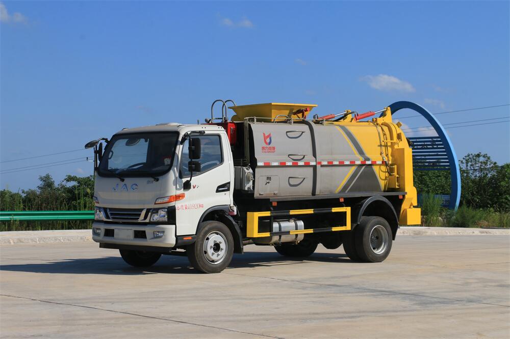上裝配置:罐體容積8m3,配備120L/240L掛桶提升翻轉機構,液壓系統,后蓋液壓鎖緊開啟,罐體可以舉升自卸,尾部帶自流閥;用于運輸液態垃圾,其特點操作簡單,密封性好,無泄漏,無異味;可選裝固液分離功能,推板擠壓功能,常用于餐館的垃圾轉運處理。