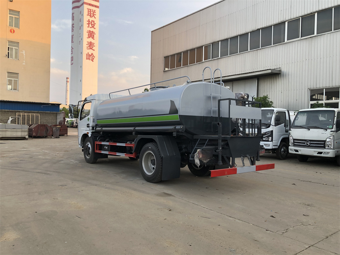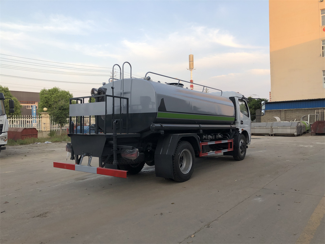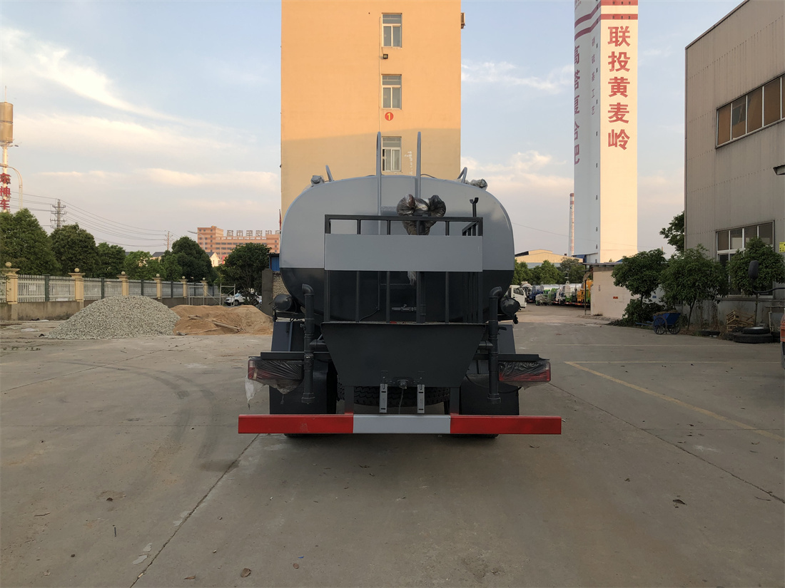 灑水車前裝有鴨形噴嘴或圓頭沖嘴,后面裝有圓柱開灑水噴嘴或蓮蓬頭噴嘴,后部有一工作平臺,裝配有水炮。后部還可裝8個噴嘴(選裝)。