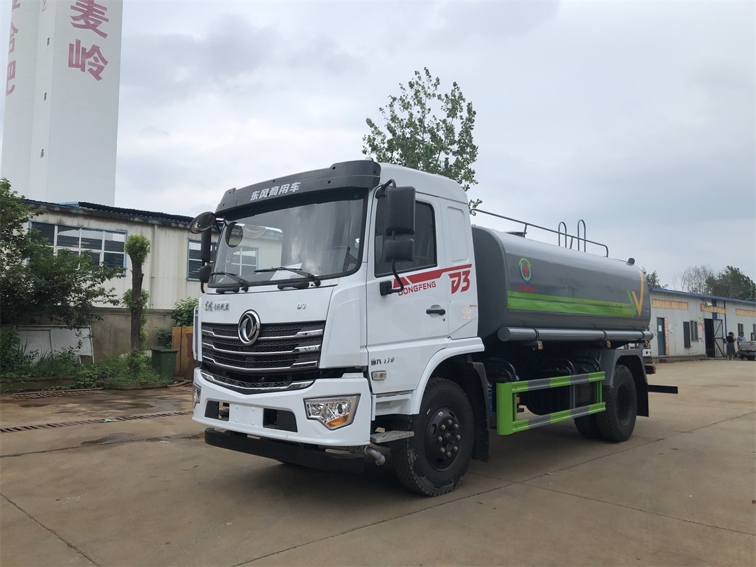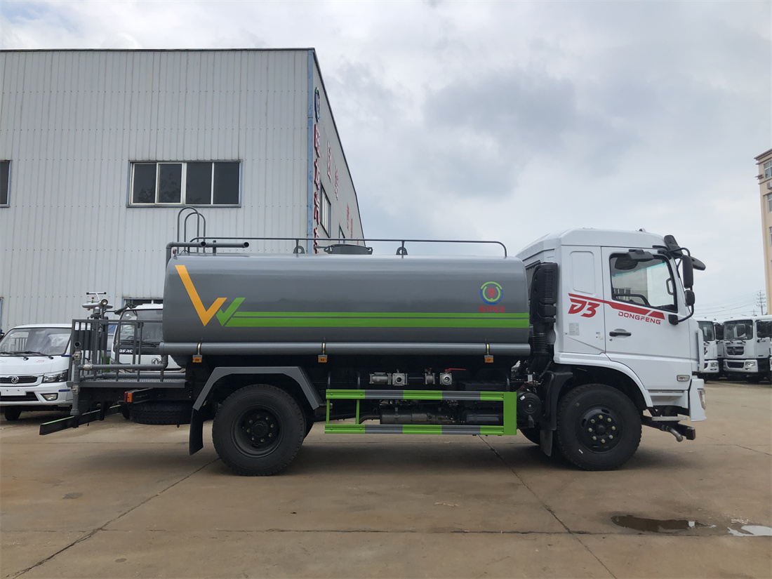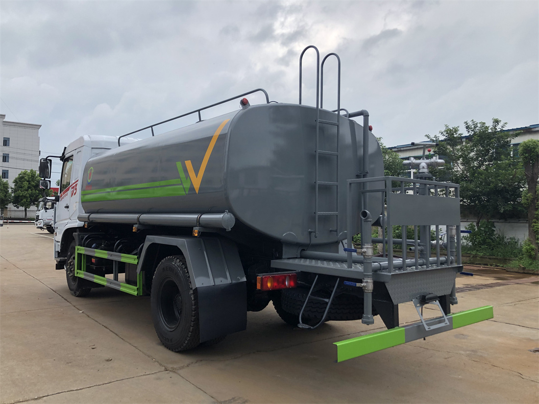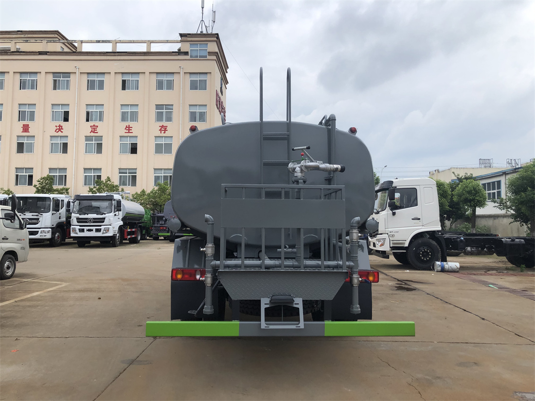 灑水車前裝有鴨形噴嘴或圓頭沖嘴,后面裝有圓柱開灑水噴嘴或蓮蓬頭噴嘴,后部有一工作平臺(tái),裝配有水炮。后部還可裝8個(gè)噴嘴(選裝)。