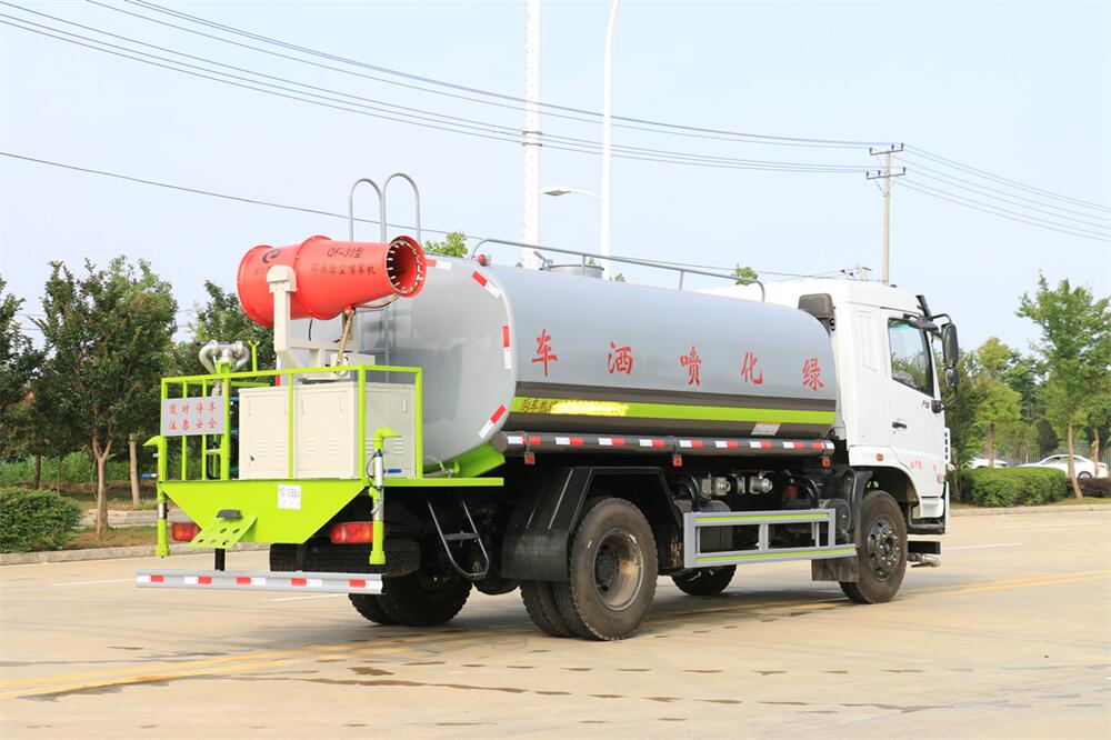 主要由發動機帶動變速箱,變速箱上安裝的取力器帶動灑水泵,灑水泵產生動力,將罐體內部的液體通過管網噴灑出去。工作范圍:自吸高度:≥7m,灑水寬度:≥14m,**大射程:≥28m;可調節成柱狀,射程≥28m;也可調節成霧狀,射程≥5m。