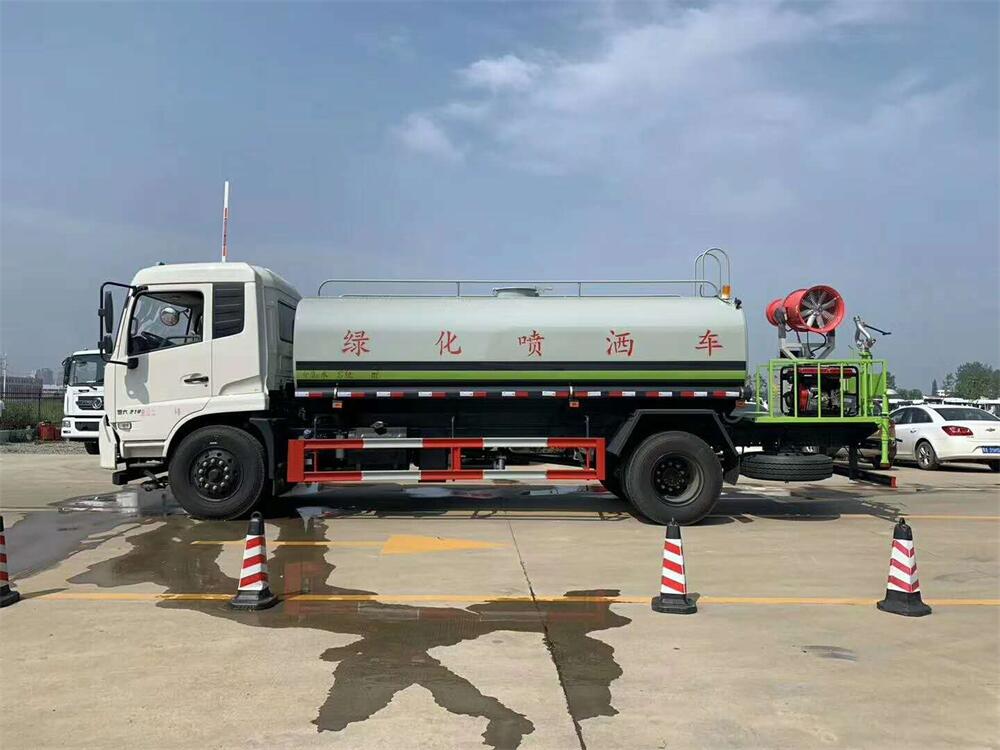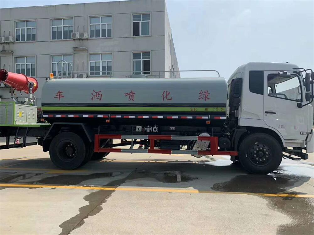 上裝配置:罐體容積 12-15立方,風送式霧炮機組30米,40米選擇,罐體采用國標Q235碳鋼材質,罐體厚度4MM,前后封頭5MM加厚型,罐體內雙層隔板具有防波蕩作用,以減輕汽車行駛時罐內液體沖擊;灑水車整車及外形尺寸嚴格按照**機動車公告制作而成;裝配大功率專用灑水泵,前沖、后灑、側噴、后平臺帶綠化灑水炮,灑水炮可全方位旋轉,可連續調成直沖狀、大雨、小雨、毛毛雨;配消防接口,自流閥,濾網,帶自吸自排功能。前封頭帶水位計,后平臺主管路帶1寸澆花接口,后爬梯,帶1個消防接頭,帶1個自流閥,1個過濾裝置,其余標配。