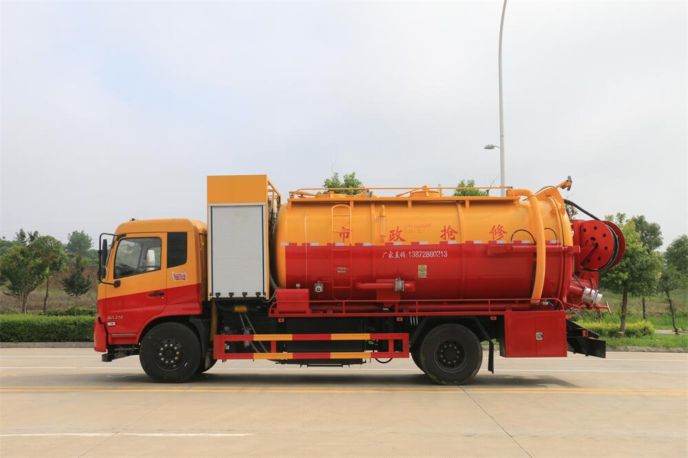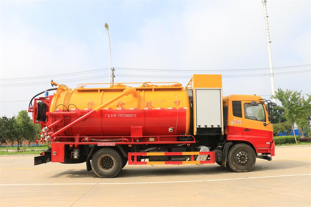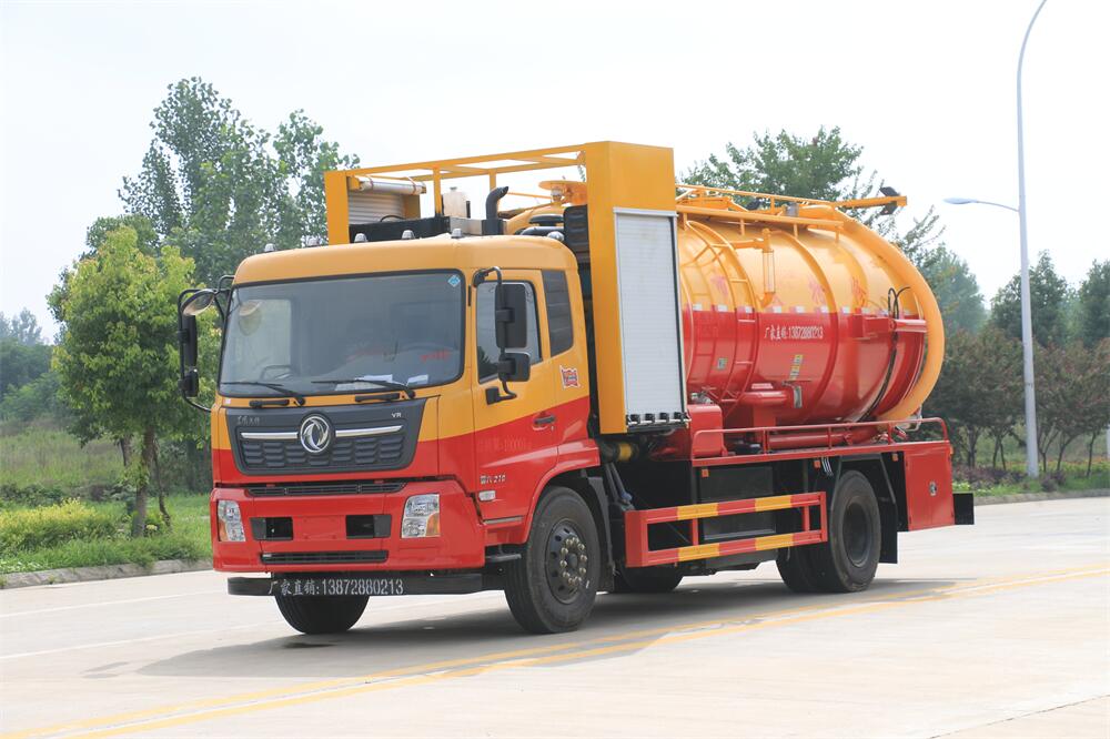 15方清洗吸污車-東風(fēng)天錦15方10+5清洗吸污兩用車-帶副發(fā)動(dòng)機(jī)圓罐紅黃色
