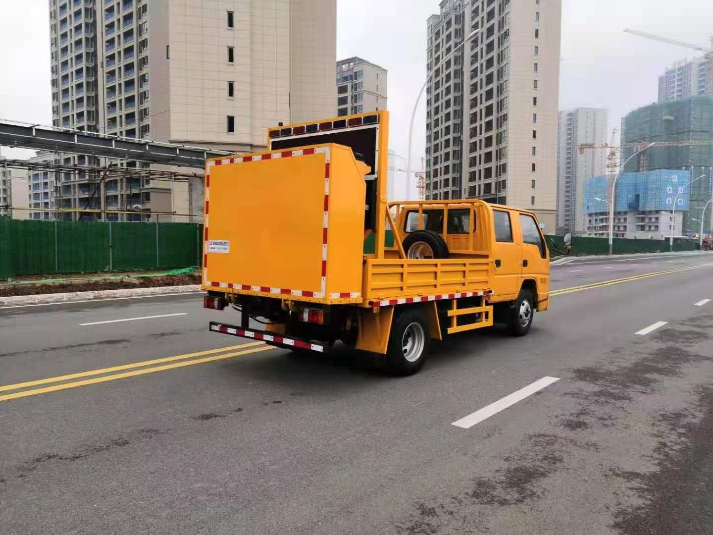 上裝配置:防撞緩沖車尾部設(shè)置防撞緩沖塊,防撞緩沖塊采用液壓升降裝置,還配備車載一體化的電子屏、電子箭頭標(biāo)志牌、頻閃燈及爆閃燈多種**示燈,能夠?yàn)楹蠓杰囕v提供**示和指示方向。箭頭指示標(biāo)志可對(duì)左、右及禁止通行進(jìn)行導(dǎo)向指示,對(duì)道路車輛提供主動(dòng)安全引導(dǎo)和安全**示,**大限度降低施工對(duì)**流量的影響并確保安全。尾部升降和燈具采用遙控**,可在車輛附近安全**防撞緩沖塊的升降和**示燈的開關(guān)。