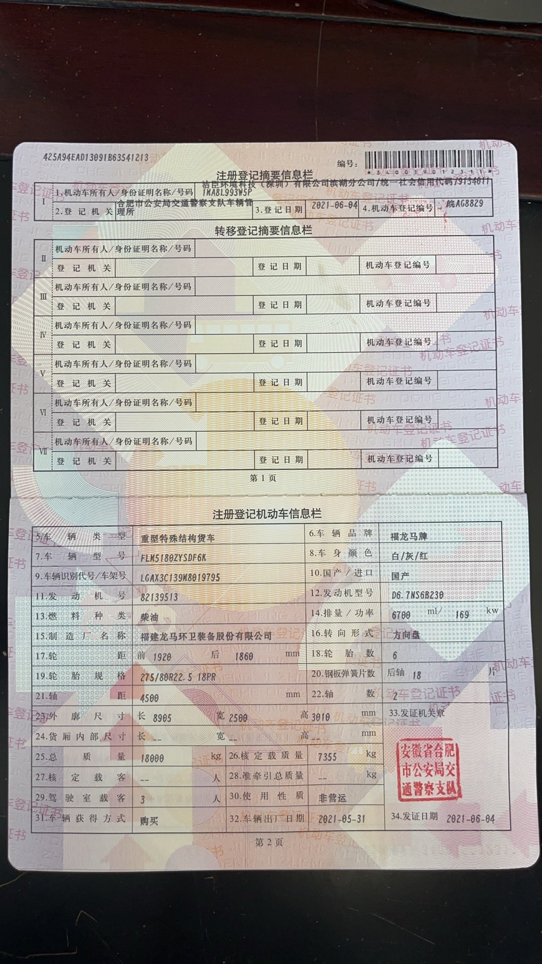 二手福龍馬14方壓縮 2??年份:2021年6月 3??發動機:康機230馬力,國六 4??底盤配置:東風天錦底盤,4500軸距,六檔變速箱,275真空胎 5?