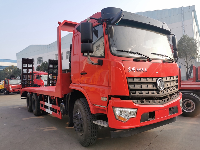 上裝采用八毫米花紋鋼板,120套100方管做橫梁,加強雙簧爬梯,可拉25噸-30噸以下挖機。