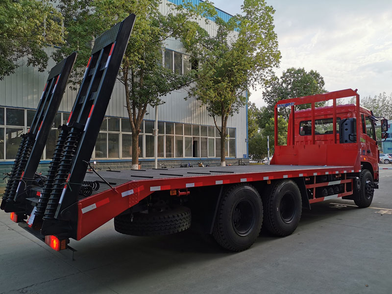 上裝采用八毫米花紋鋼板,120套100方管做橫梁,加強雙簧爬梯,可拉25噸-30噸以下挖機。