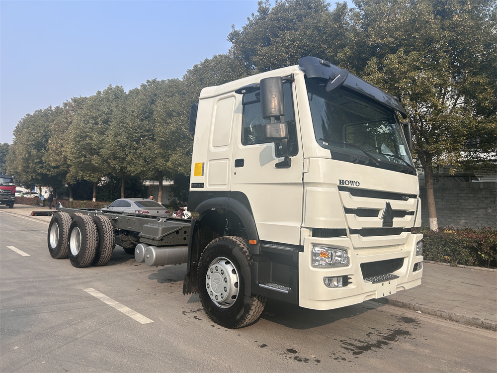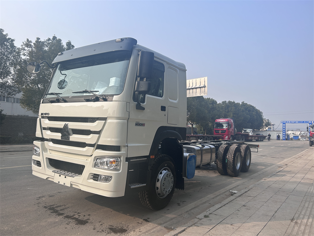 ZZ1257N4647B1R 出口HC16雙后橋(鼓),雙層車架(8+8/300),前后加強(qiáng)版多片簧(10/12),HW19710變速箱+HW70法蘭式取力器,WP10.340E22發(fā)動機(jī),HW76新前臉駕駛室,12.00R20輪胎(混合花紋/18PR),不帶ABS,速比5.73,高位保險杠(全金屬),右置方向機(jī),VGD95前軸(鼓)