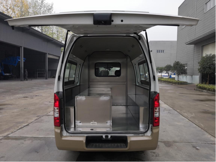 產(chǎn)品簡介 1. 主要配置:前空調(diào),前暖風(fēng),電動車窗,ABS+EBD, 遙控鑰匙2. 改裝部分采用304L不銹鋼制作,中間不銹鋼隔墻安裝拉窗,不銹鋼地板,不銹鋼常溫棺不銹鋼擔(dān)架,加兩側(cè)玻璃下不銹鋼裝飾 ,根據(jù)您的要求設(shè)計(jì)改裝方案,模板一次成型,隔墻密封,拒串味。可以廠家自提,也可以付定金貨到付款。(冰棺選裝,后空調(diào)選裝,可視系統(tǒng)選裝,對講系統(tǒng)選裝)